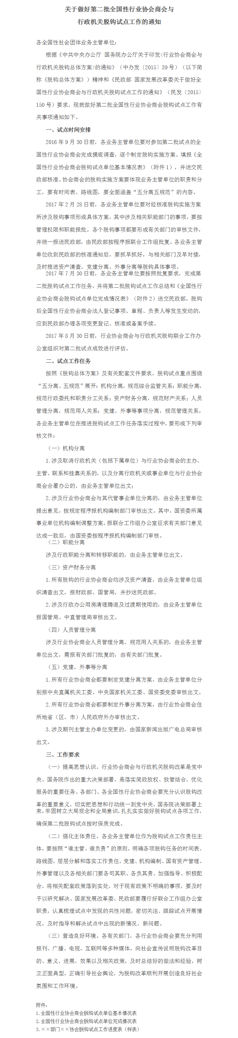 民政部关于做好第二批全国性行业协会商会与行政机关脱钩试点工作的通知