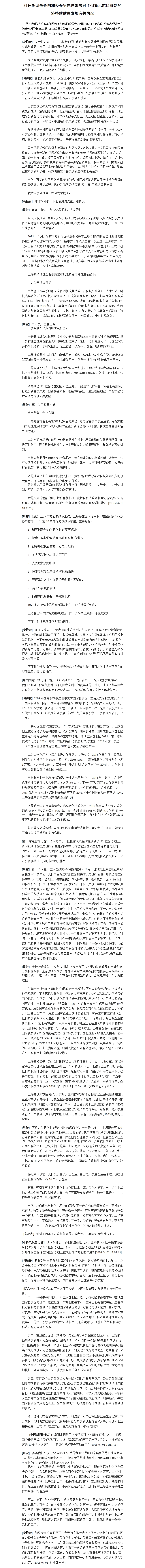 科技部副部长阴和俊介绍建设国家自主创新示范区推动经济持续健康发展有关情况