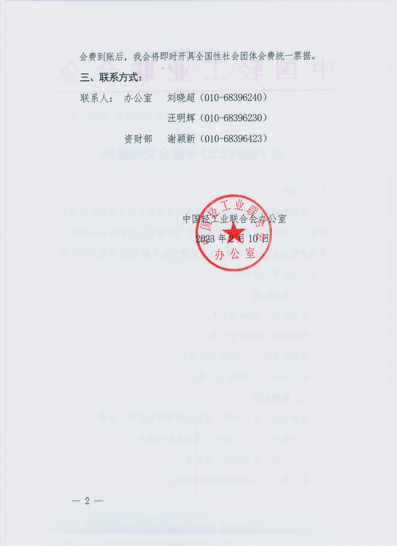 关于缴纳 2023 年度会费的通知