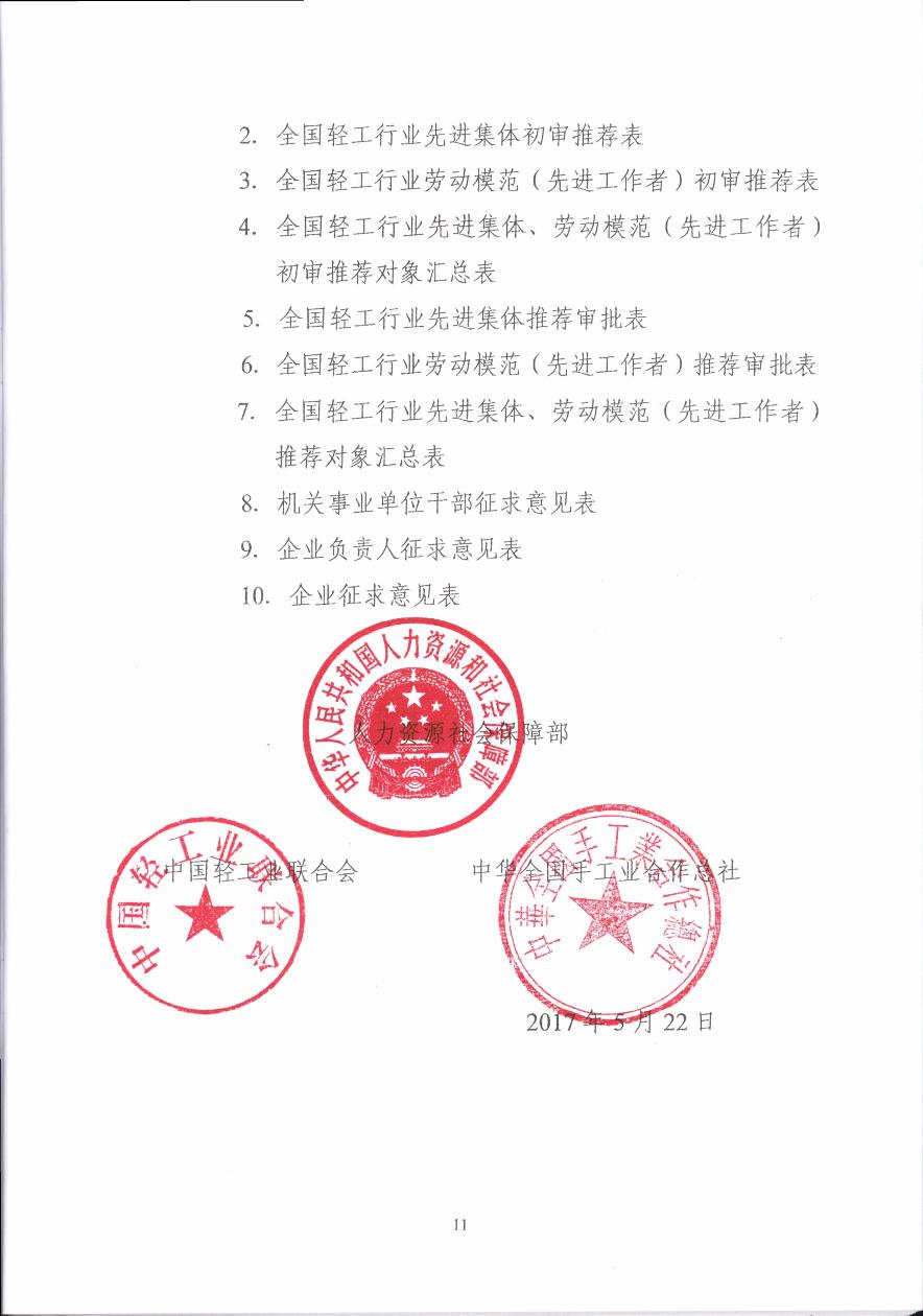 人力资源社会保障部 糖心视频业联合会 中华全国手工业合作总社 关于评选全国轻工行业先进集体、劳动模范 和先进工作者的通知