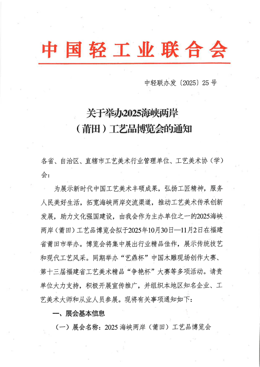 关于举办2025海峡两岸(莆田)工艺品博览会的通知