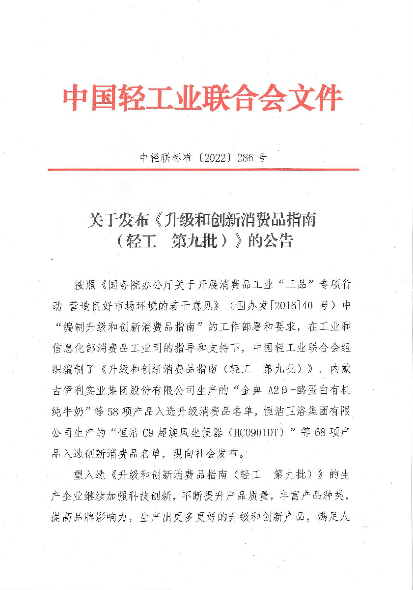 《升级和创新消费品指南(轻工 第九批)》