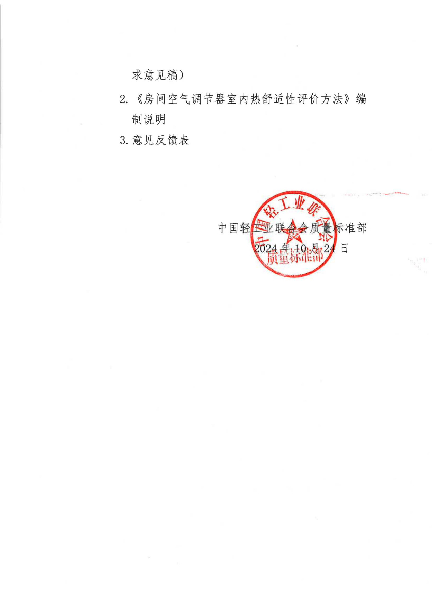 关于征求糖心视频业联合会团体标准《房间空气调节器室内热舒适性评价方法》(征求意见稿)意见的函