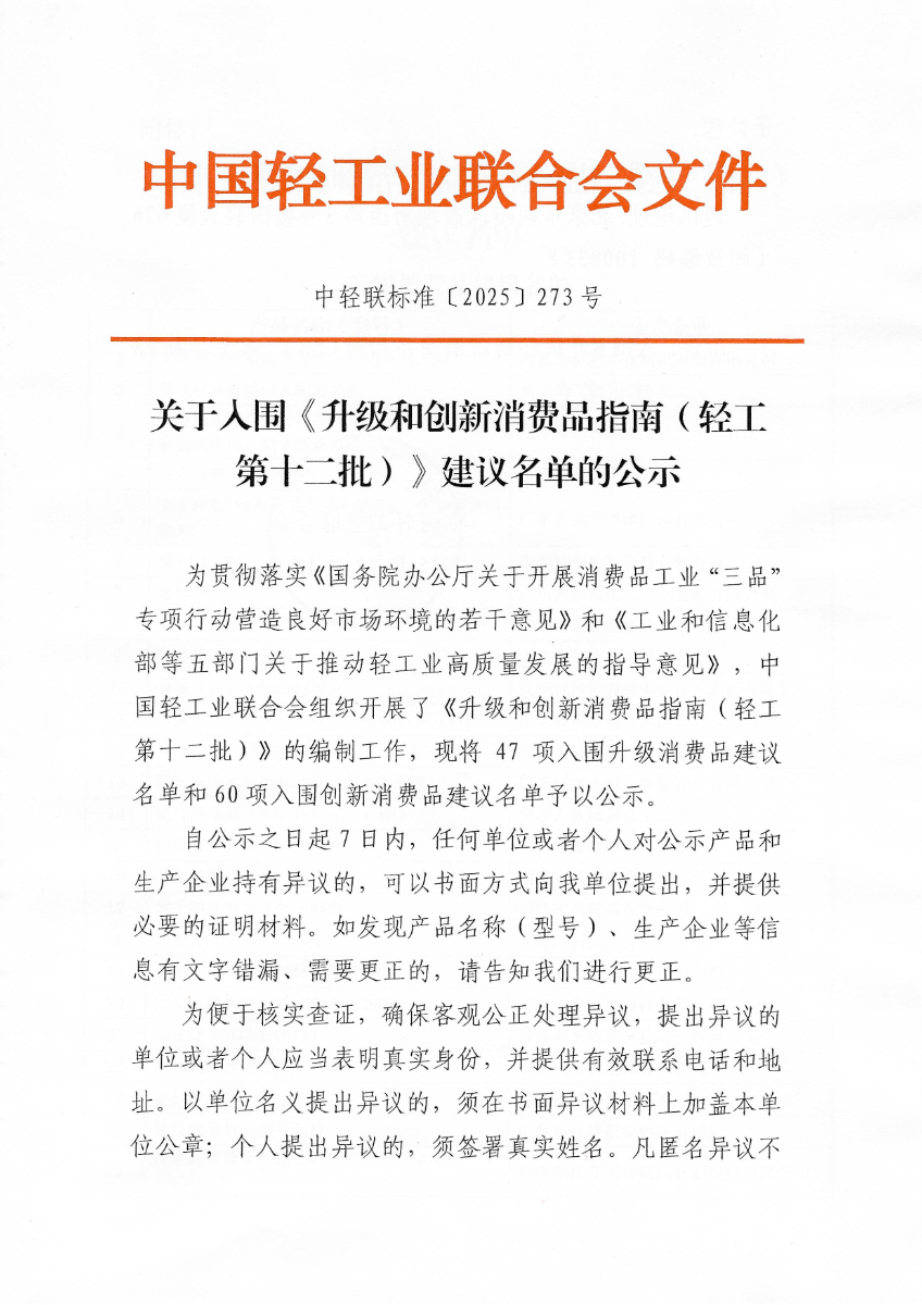 糖心视频观看 - 关于入围《升级和创新消费品指南(轻工 第十二批)》建议名单的公示