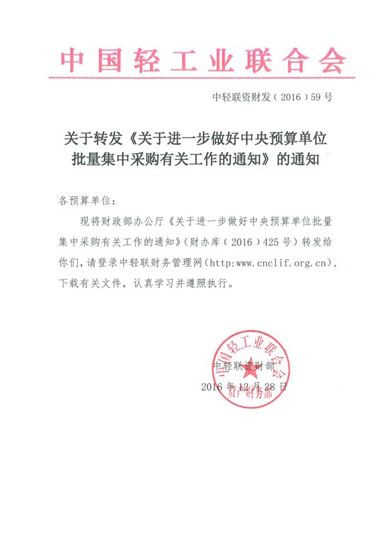 关于转发《关于进一步做好中央预算单位批量集中采购有关工作的通知》的通知