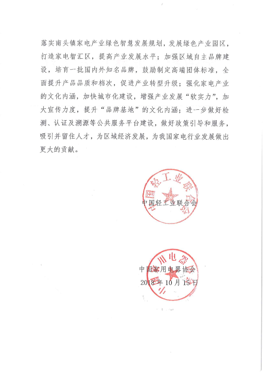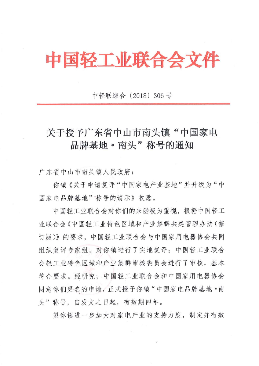 关于授予广东省中山市南头镇“中国家电品牌基地·南头”称号的通知 (糖心视频在线)