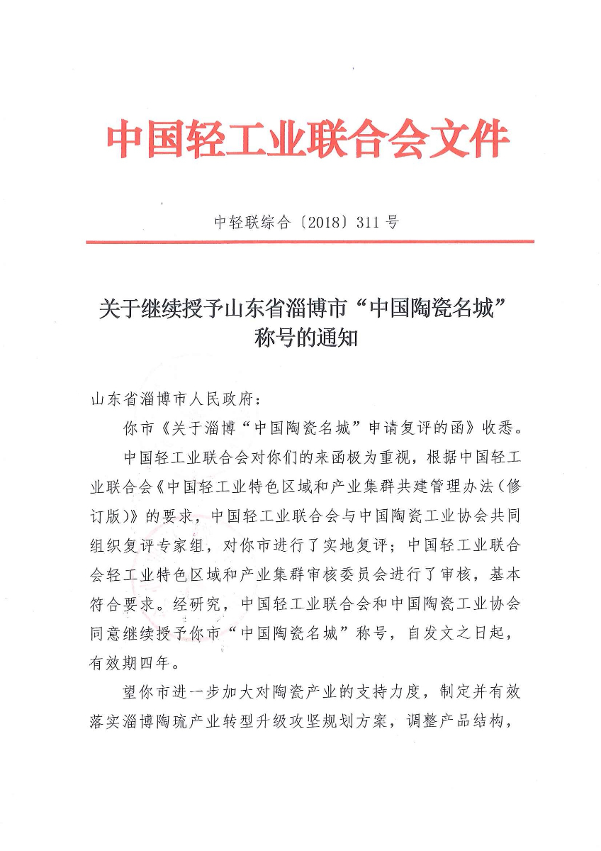 关于继续授予山东省淄博市“中国陶瓷名城”称号的通知 (糖心视频免费观看)