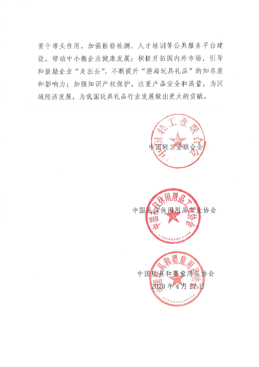 关于继续授予广东省汕头市澄海区“中国玩具礼品之都·澄海”称号的通知