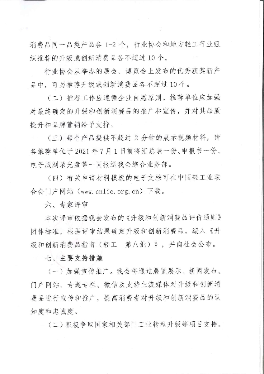 关于开展升级和创新消费品(轻工 第八批)推荐工作的通知
