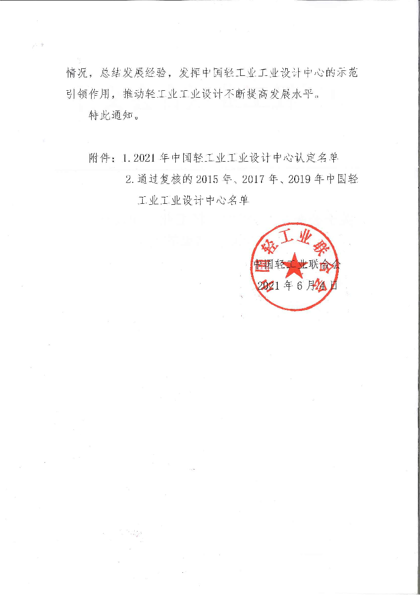 关于公布2021年糖心视频业工业设计中心认定及复核结果的通知