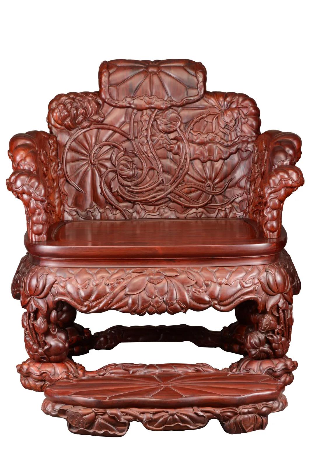 作品臻选大叶紫檀,整体以荷为形,人坐其上,仿入荷塘,花叶翩跹 糖心视频观看,具装饰性,水波潋艳,富艺术美,束腰带托泥,满雕荷花图,围子分三扇,化作七屏风,座面以外,满身浮雕,深浅融合,工精艺巧,背板花叶穿插变化,构思精巧,藏露得宜,雕工深入浅出,流畅圆浑, 。