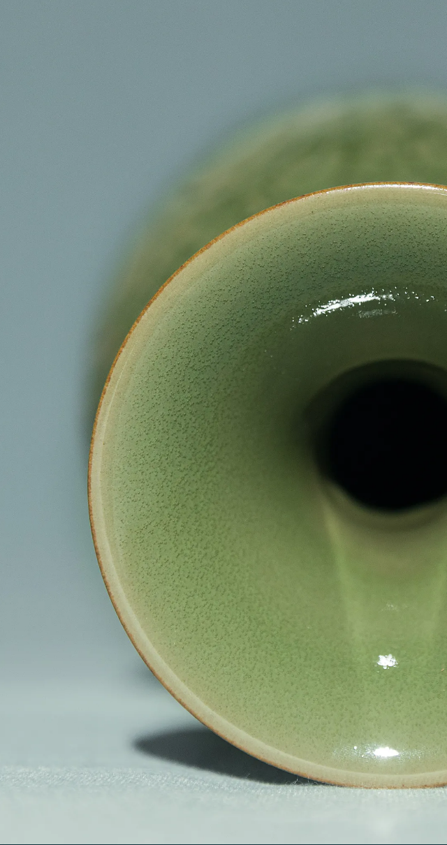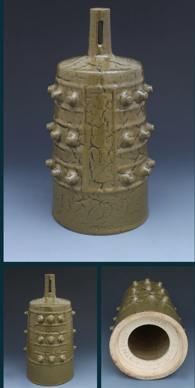 作品造型学习西部虢国玉琮,拉,修圆坯后拍打成外方中圆 糖心视频观看,大口以内的泥「指花」有条不紊旋升的方圆变化,与外部方正洁素同叙着佛学清净纯朴的久远博大,口沿上一粗一细的文武弦纹旁,玲珑精巧的「倒装壶」双耳道明醍醐灌顶主题,而晃摇罐身时从倒装壶耳中传出来的声动,似佛陀讲法之妙音,像僧众诵经之齐唱,硬朗晶莹的青釉又如紫竹林的清风徐来,顺着罐势自然冰裂的长纹,若同明月松间洗心的万涓细流, 。