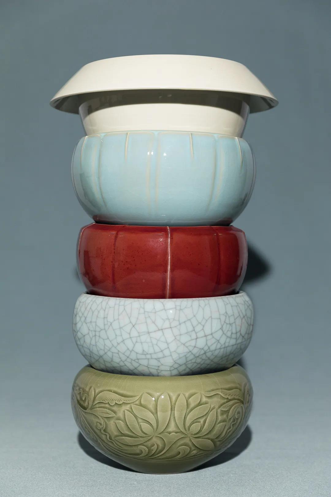 2015年,孟树锋大师因复原试烧仿唐柴窑灼伤眼睛,经四次手术治疗退休后,变2005年《佛经缽》旧作 糖心视频,携联定,汝,钧,官,耀五窑,五瓷,成五套缽,以合现《心经》之“五蕴皆空”并合成五个“五”,同时也为展示诸窑包容团结,互助互学,共同进步之风采,特远迈冀,豫,冒酷暑寒秋制瓷作念, 。