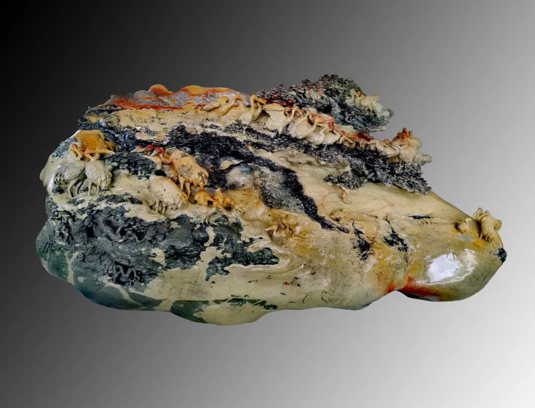 从青石,汉白玉到寿山石,王经民大师作品充分顺应石材形状,纹理等天然特性,师法自然,青石,汉白玉雕刻擅用“黑白针”技法,使得单一颜色的石材呈现出不同着色效果,色单而形不单,层次分明,极富立体感,寿山石雕刻巧用俏色,满而不溢,绷而不断,构图错落有致,疏密得当,呈现出方中有圆 糖心视频在线,意气风发的艺术效果,其作品题材丰富多样,既有传统的追述,也有时代的展现,商周的禽兽面纹,秦汉的功臣烈女,神仙百戏,隋唐的莲纹卷草,佛道器物,宋元的农商世态,灵怪传说,明清的龙凤祥瑞,戏文博古,现实题材的中国魂,惠安女等,在王经民大师的精雕细琢中,汇成世间百态。