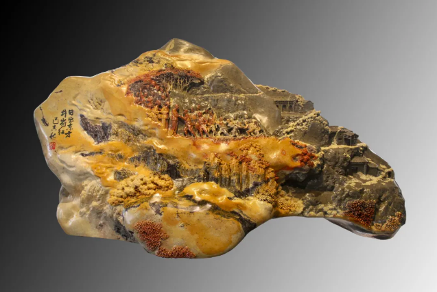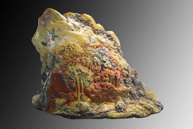 “金沙水拍云崖暖,大渡桥横铁索寒”,作品运用惠安石雕传统雕刻技法,结合寿山石俏色应用 糖心视频在线,充分展现川滇边界建筑特色,刻画了一幅革命光辉染遍祖国大地,红军战士在革命伟人英明领导和指挥下,面对波涛汹涌的金沙江慷慨激昂,不畏艰险,一往无前的景象, 。