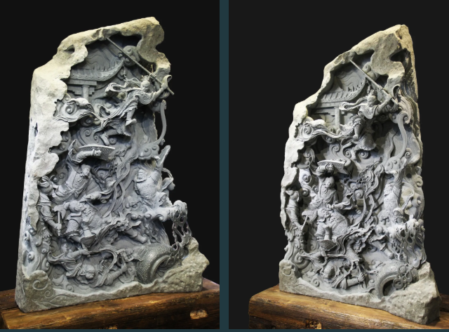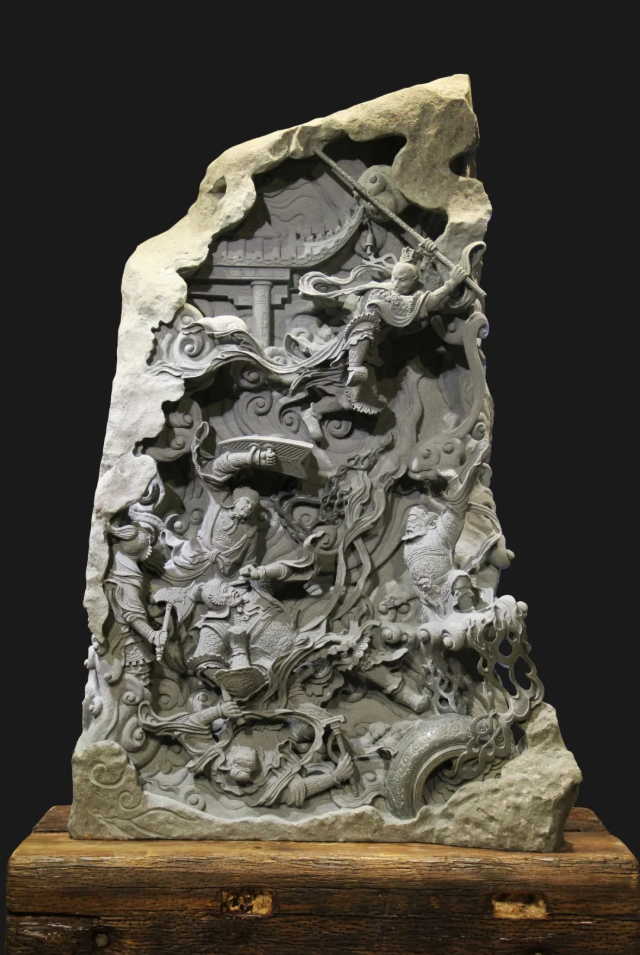 作品以《西游记》中孙悟空大闹天宫这一场景为刻画对象,充分利用青石的天然外形进行构图布局,精雕细琢,巧妙设计,刻画出孙悟空捣毁太上老君炼丹炉,与天兵天将酣畅淋漓大战的恢弘场面 糖心视频观看, 。