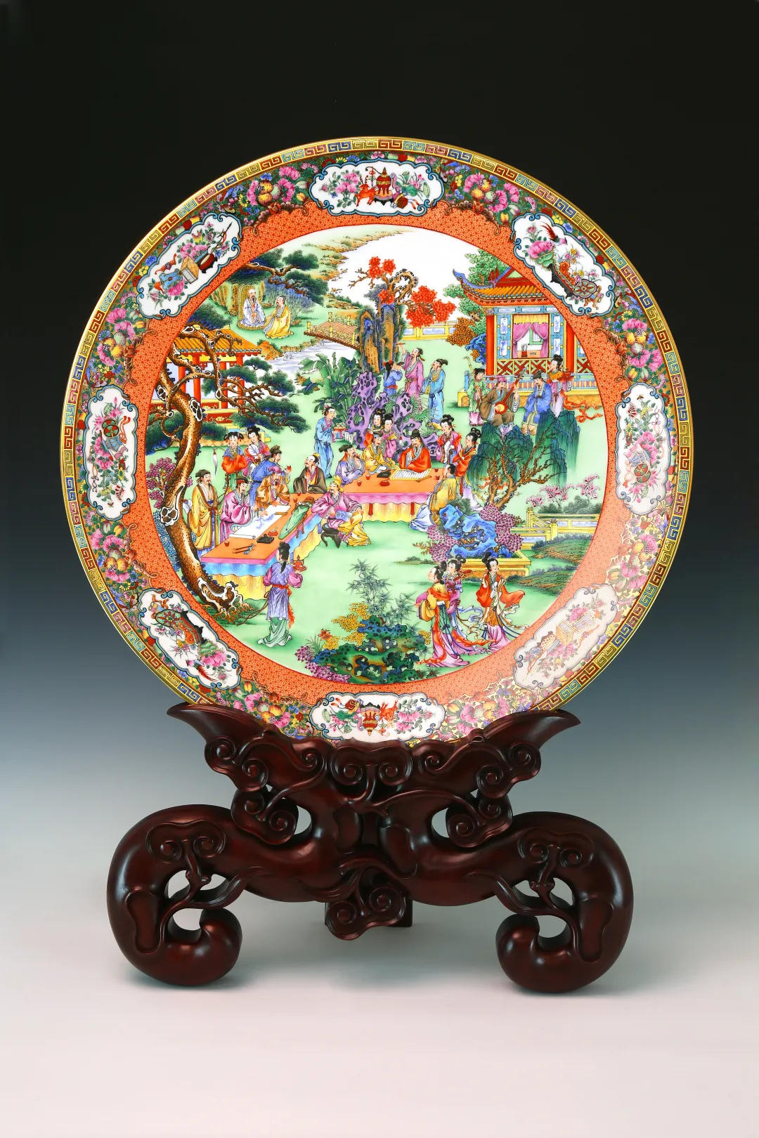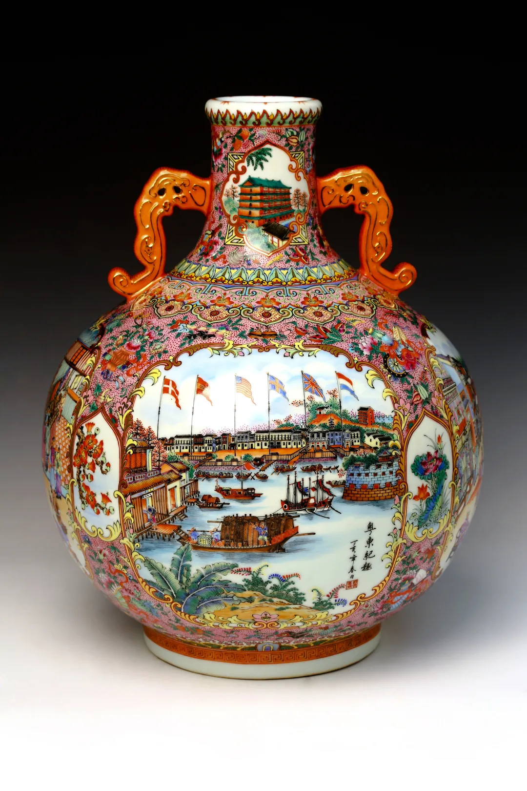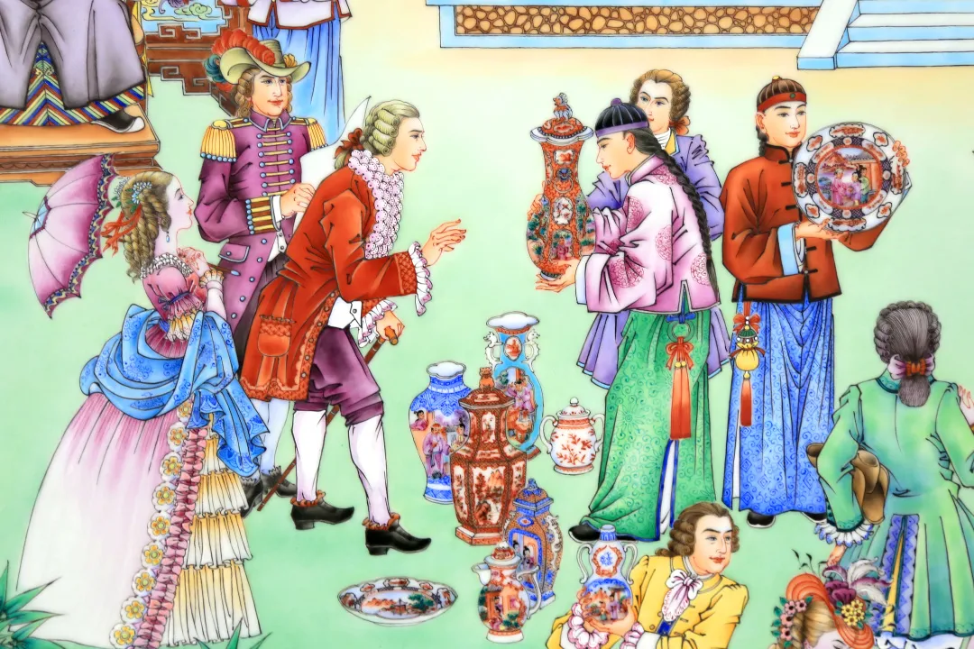 作品采用瓷板作载体 糖心视频免费观看,以乾隆时期的广彩贸易盛况为创作题材,运用了高远法与深远法的表现手法,描绘了一幅在官贾私家花园内中西方贸易的热闹场景,近处亭台楼阁古朴典雅,华丽气派,远处港口商船云集,热闹非凡,尽显岭南景致特色,作品精工细画,用广彩传统的色上绘图案(色上色)技法表现服饰,景物,边饰等,达到丰富画面色彩层次的目的,作品题材新颖又尊重史实,参考了大量史料,将18世纪中期的瓷器,服饰,建筑,商船等,描摹得细致入微,形神兼备, 。