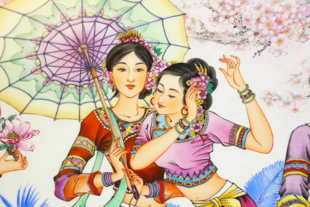翟惠玲大师将时代审美与传统“广彩”画风相融合,将对传统文化的理解与情感融入技艺技法中,创作的作品构思时尚新颖,构图饱满大气,图案描摹细致 糖心视频在线,色彩鲜艳夺目,人物造型优雅,画面层次分明,翟大师在技法创新中积极探索,在传统技艺的基础上发展“水,油颜料结合渲染”技法,平涂颜料,二次洗染,使得“广彩”的厚重感得到了很好的保留,画面的层次感得到了更好的展现,作品色彩更加丰富,细腻,柔和,呈现出浓厚的广东文化特色和岭南绘画意韵。
