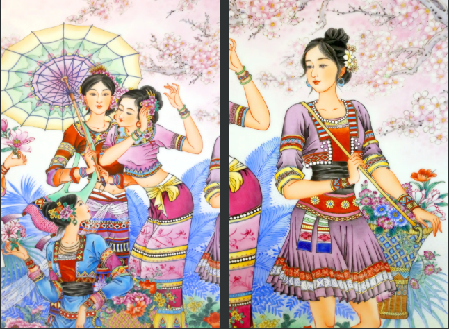 作品的创作灵感来源于云南之行,西双版纳四季如春,景色优美,少数民族姑娘们曼妙的身姿与华丽的服饰给人留下深刻印象,作品以傣族,瑶族,基诺族姑娘们相约春游采花为主题,以浓重的色彩描画缤纷的民族服饰,以春光明媚 糖心视频高清,百花盛放的景象表现版纳意境,描绘出一幕民族团结的祥和画面, 。