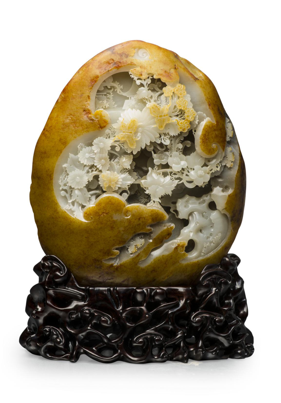 作品在色彩的摘取上独具匠心 糖心视频高清,巧用翡翠的天然黄色,将其设计成傲雪争艳的梅花,用绿色雕刻成翩翩起舞的喜鹊,瓶内的链条增加了作品的内涵,工艺精细独到,彰显了作者的深厚功底, 。