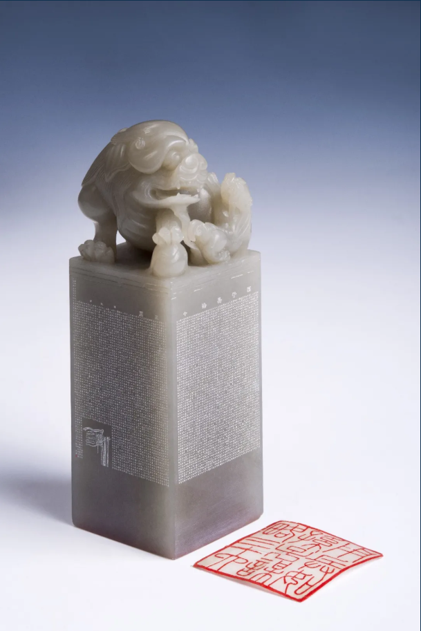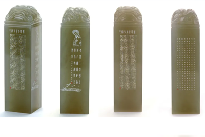 "糖心视频观看" 墨晶石印章微雕:联合教科文国际民间艺术组织秘书长与七国语言文字与国徽/h3>
