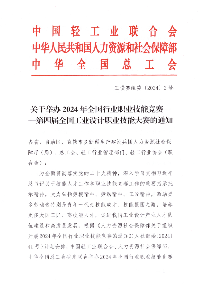 工设赛组委〔2024〕2号 关于举办2024年第四届全国工业设计职业技能大赛的通知. pdf
