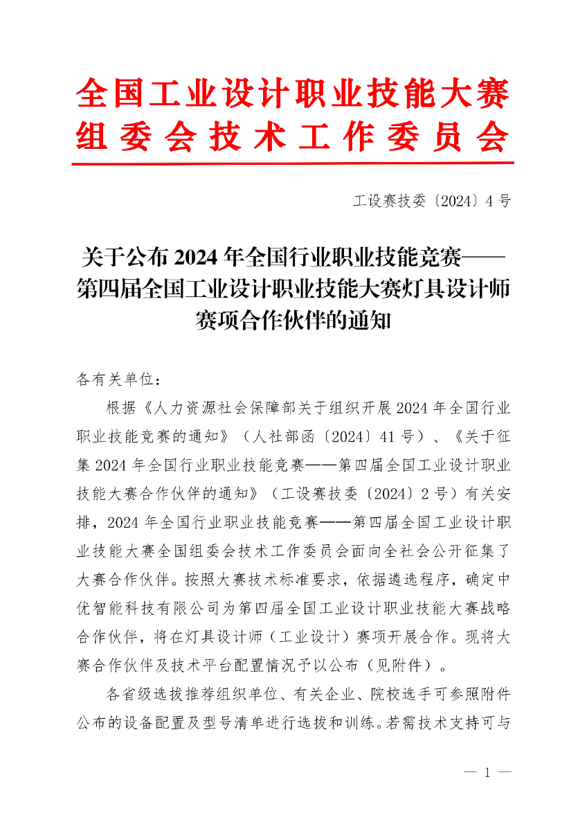 关于公布2024年第四届全国工业设计职业技能大赛灯具设计师赛项合作伙伴的通知