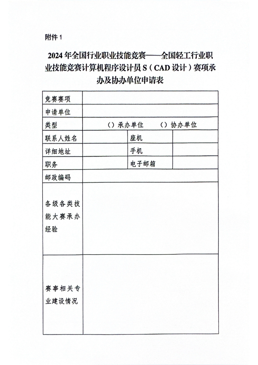 关于开展2024年全国轻工行业职业技能竞赛计算机程序设计员s(cad设计)赛项承办、协办单位征集工作的通知