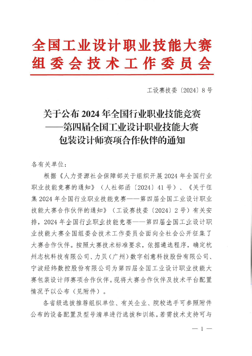 关于公布2024年第四届全国工业设计职业技能大赛包装设计师赛项合作伙伴的通知