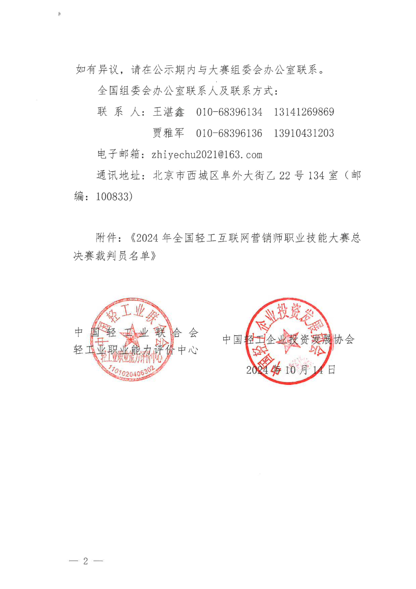糖心视频网站 - 关于公示2024年全国轻工行业职业技能竞赛互联网营销师S赛项总决赛裁判员的通知