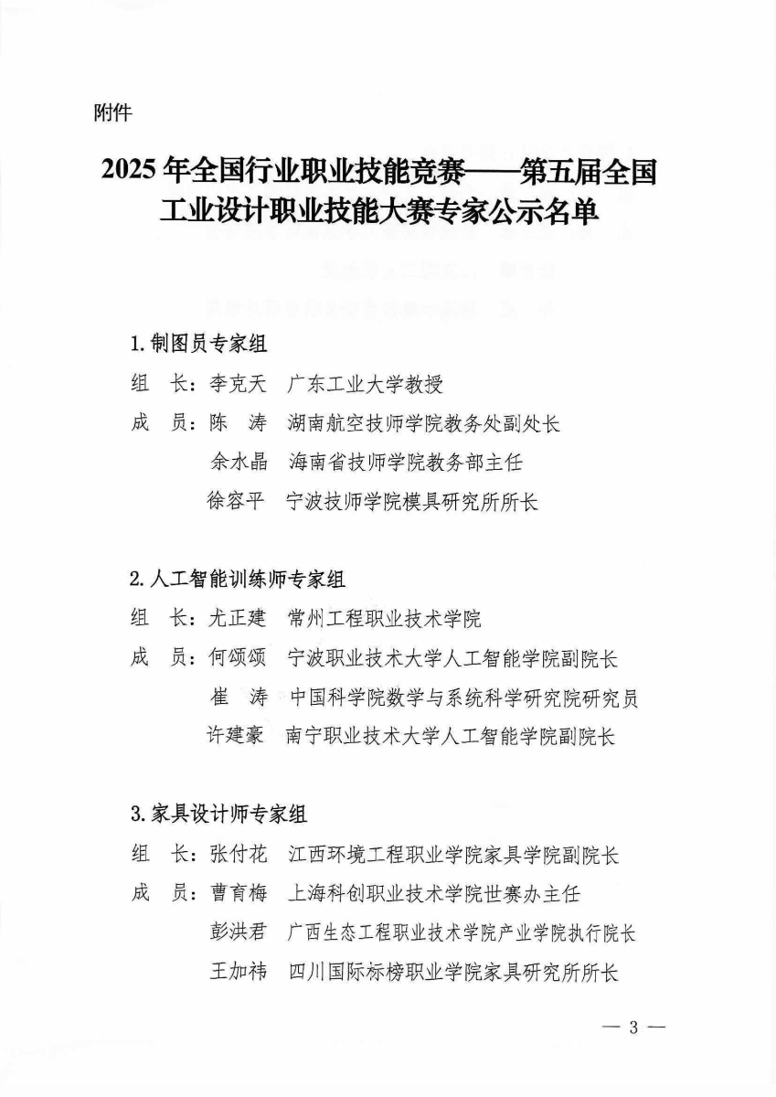 关于对2025年第五届全国工业设计职业技能大赛专家名单进行公示的通知