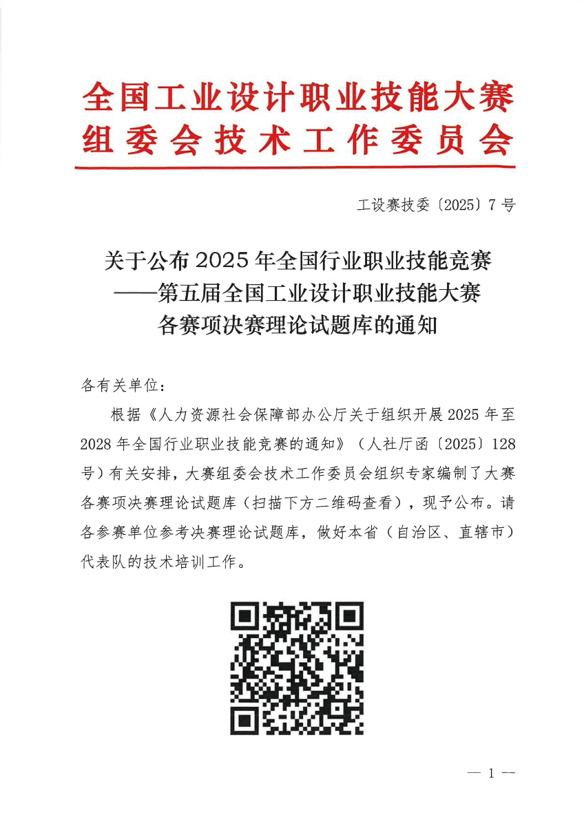 "糖心视频在线" 关于公布2025年第五届全国工业设计职业技能大赛决赛理论试题库的通知