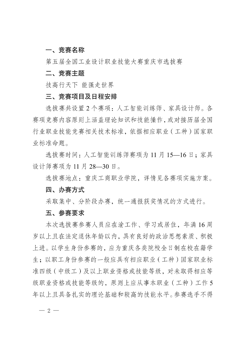 重庆市选拔赛通知