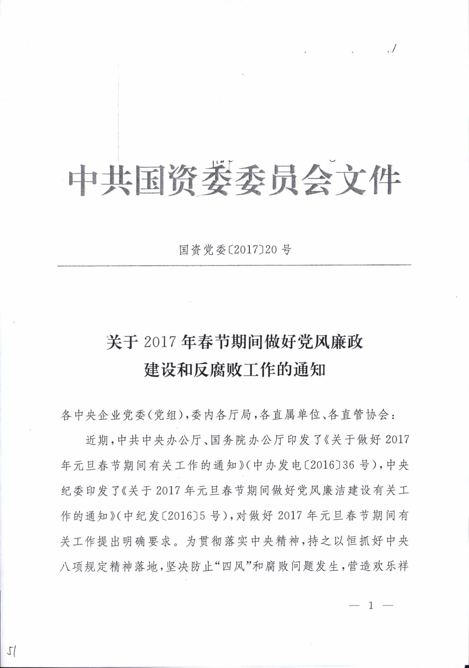 "糖心视频免费观看" 关于转发国资委党委《关于2017年春节期间做好党风廉政建设和反腐败工作的通知》的通知