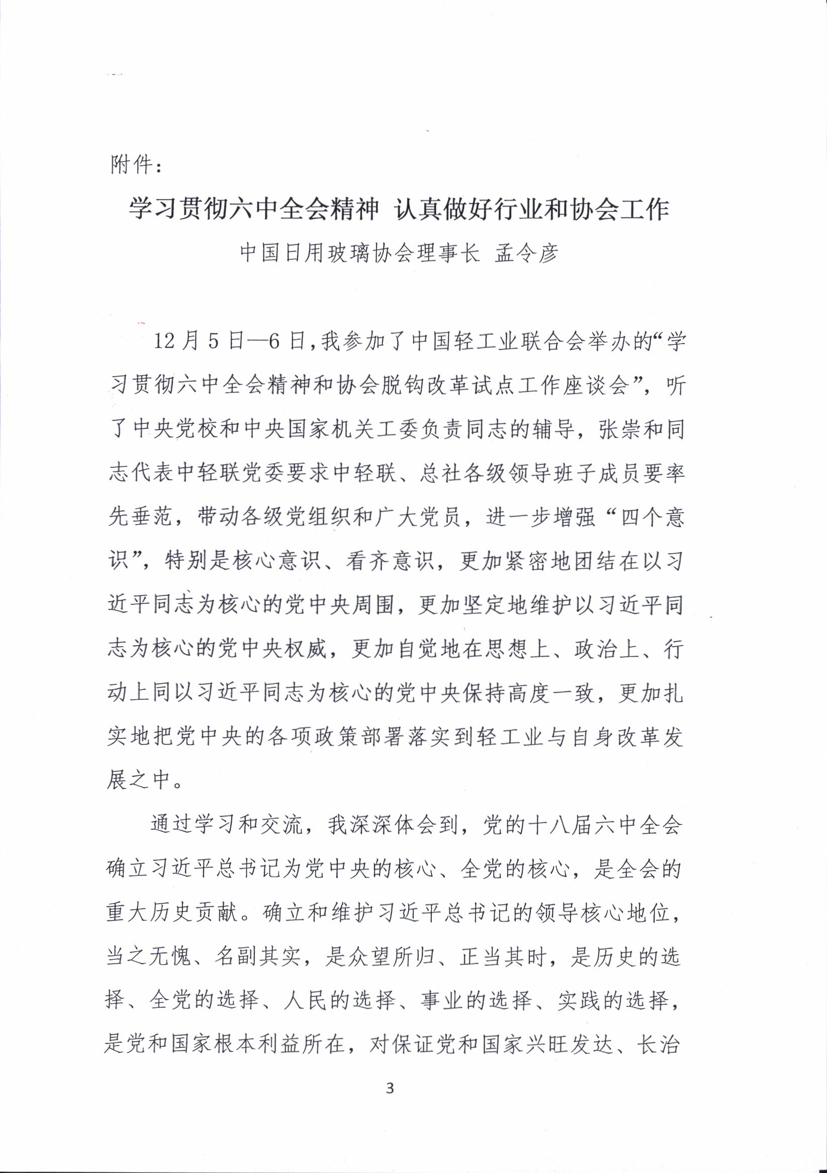 关于转发孟令彦同志学习六中全会精神 认真做好协会工作体会的通知