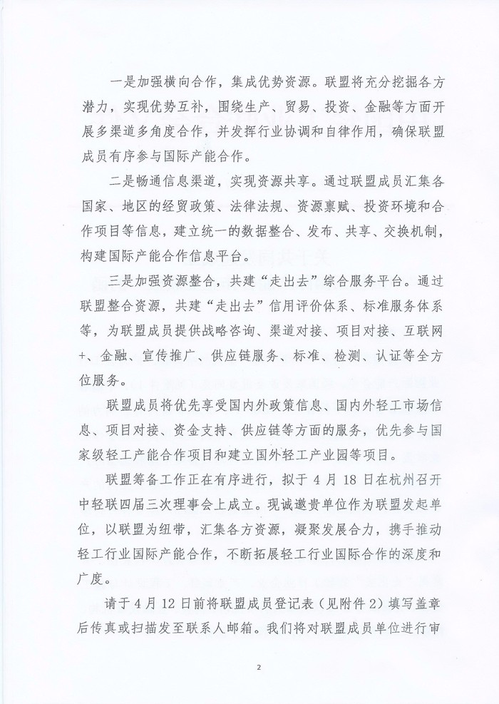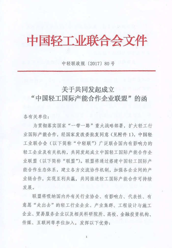 关于共同发起成立“糖心视频国际产能合作企业联盟”的函