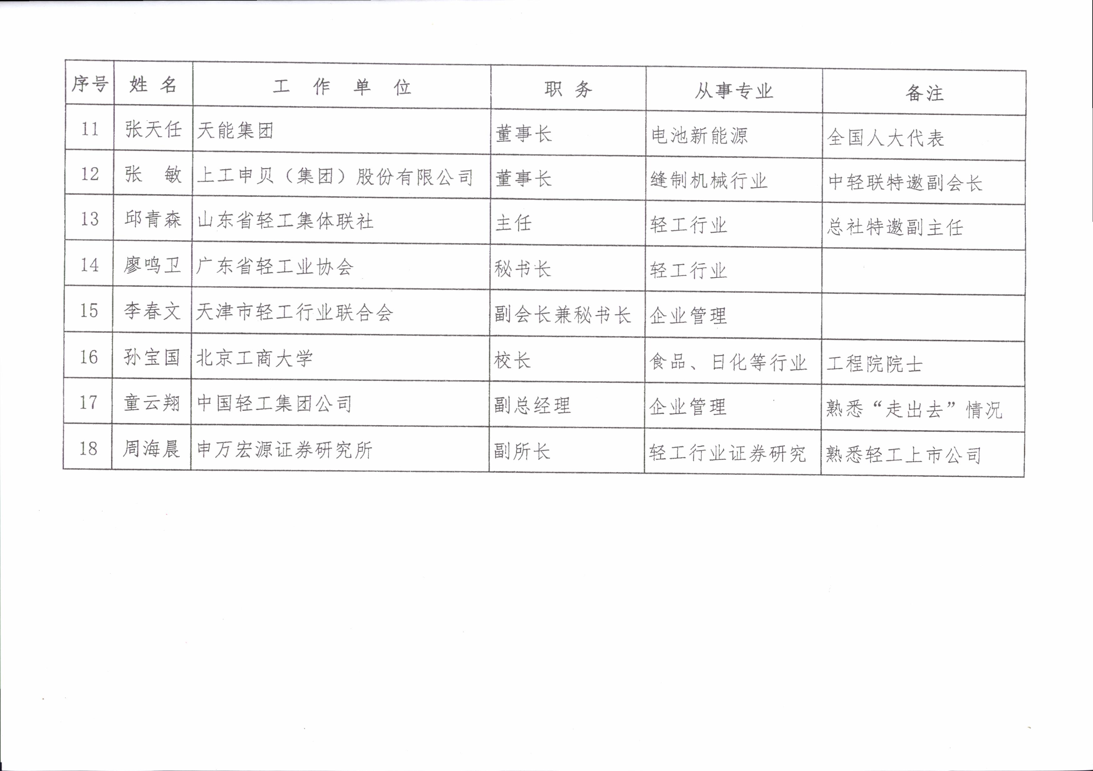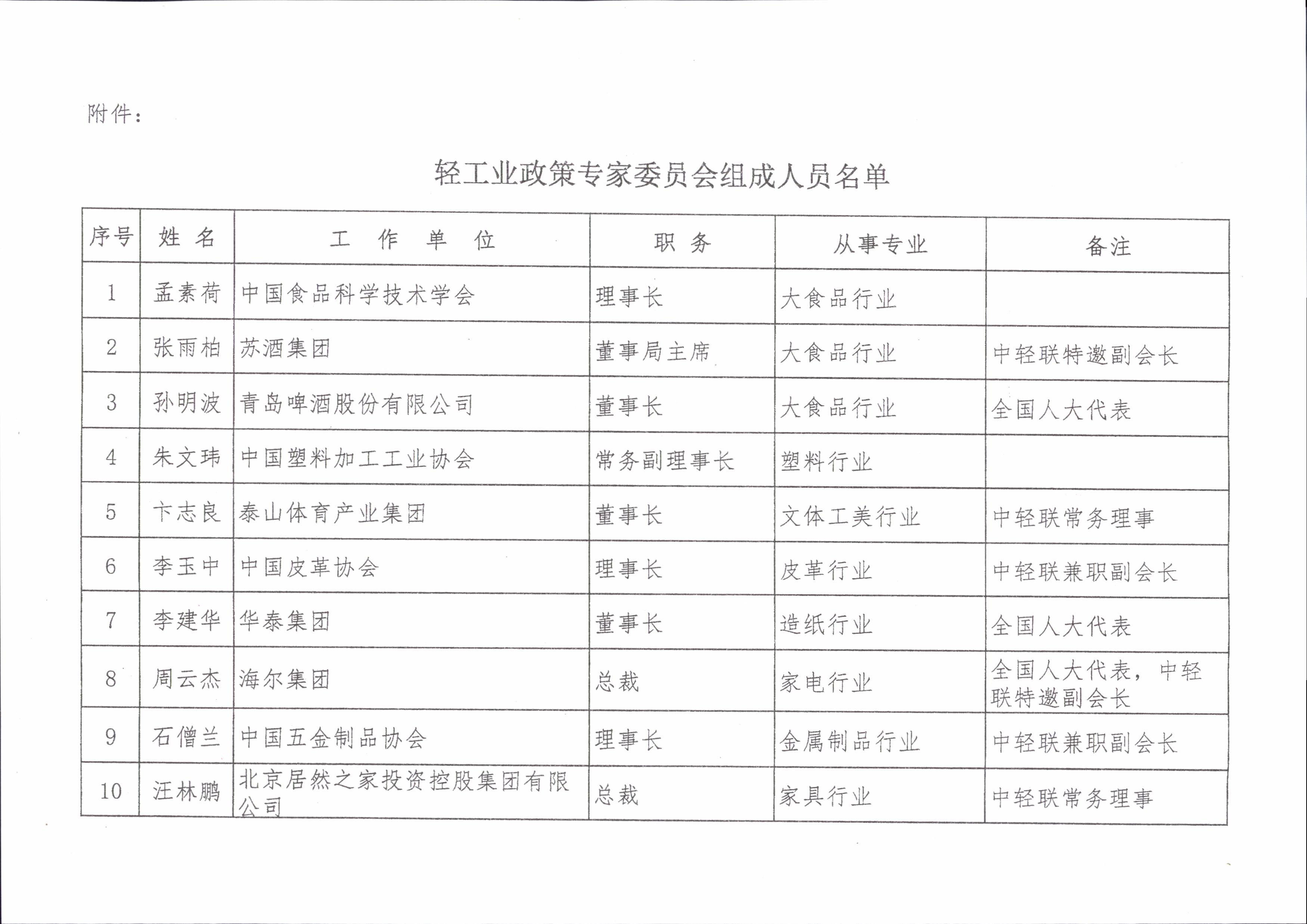 轻工业政策专家委员会组成人员名单2