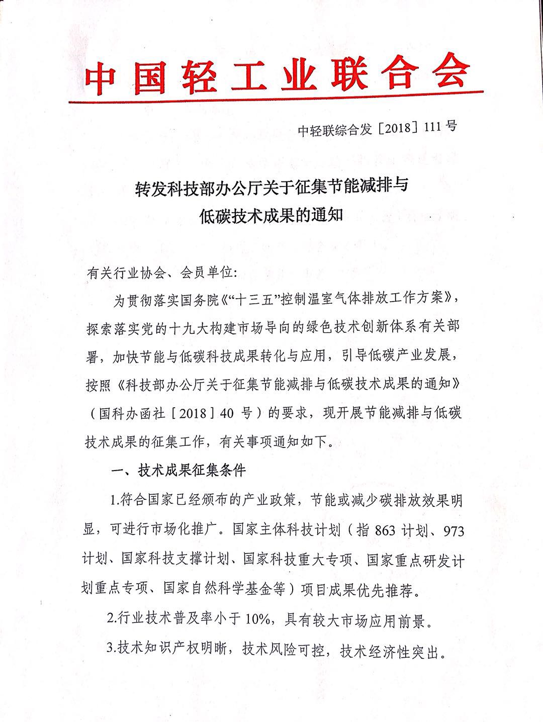 转发科技部办公厅关于征集节能减排与低碳技术成果的通知 (糖心视频在线)
