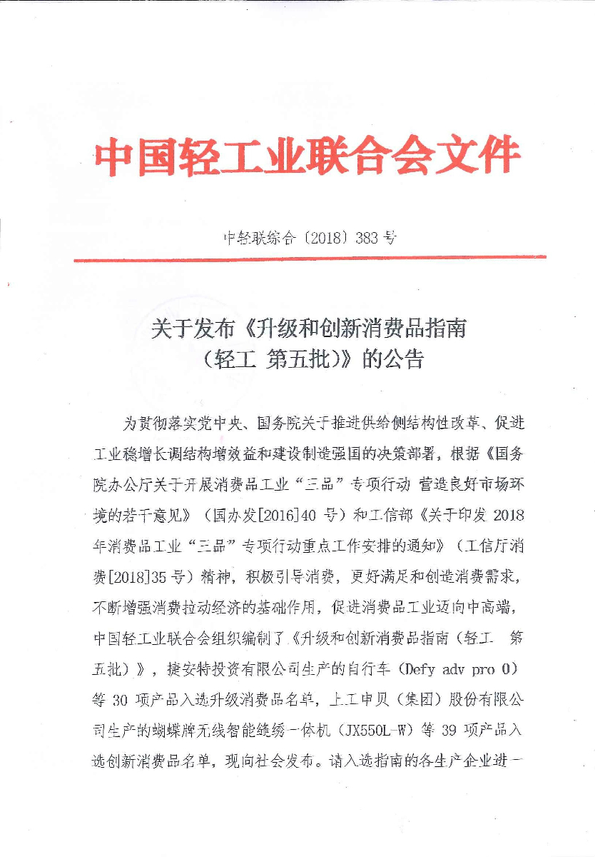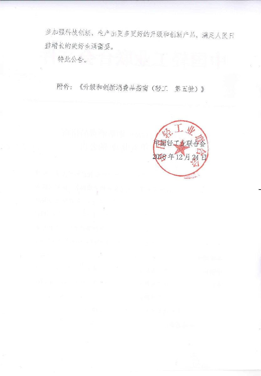 关于发布《升级和创新消费品指南(轻工 第五批)》的公告