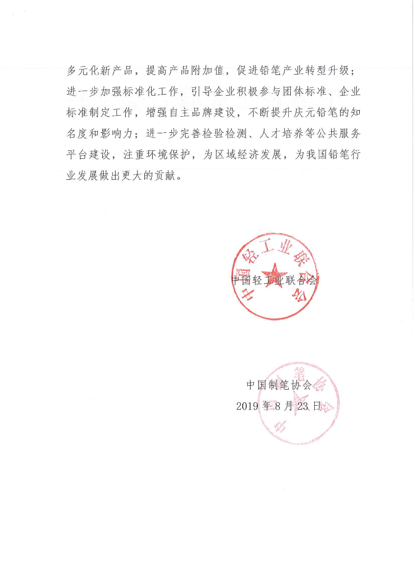 关于继续授予浙江省庆元县“中国铅笔生产基地·庆元”称号的通知