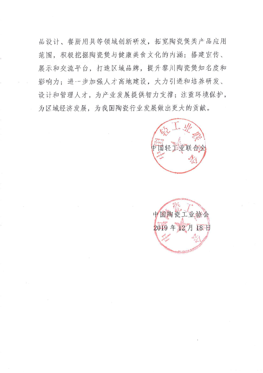 关于授予江西省黎川县“中国陶瓷煲都·黎川”称号的通知