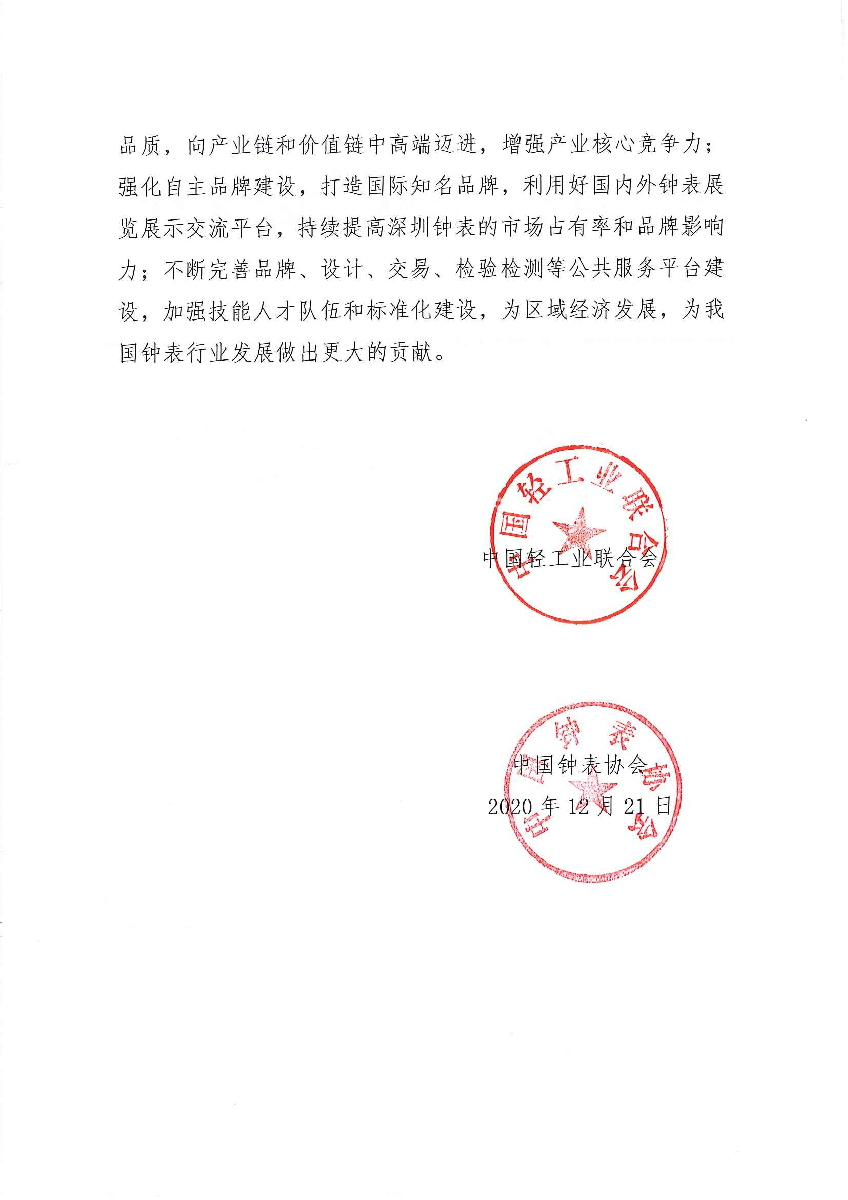 关于继续授予广东省深圳市“中国钟表之都·深圳”称号的通知