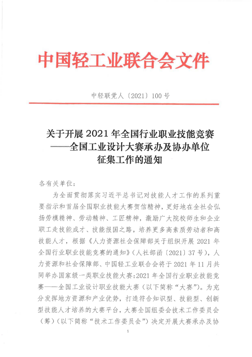 "糖心视频网站" 关于开展2021年全国行业职业技能竞赛——全国工业设计大赛承办及协办单位征集工作的通知