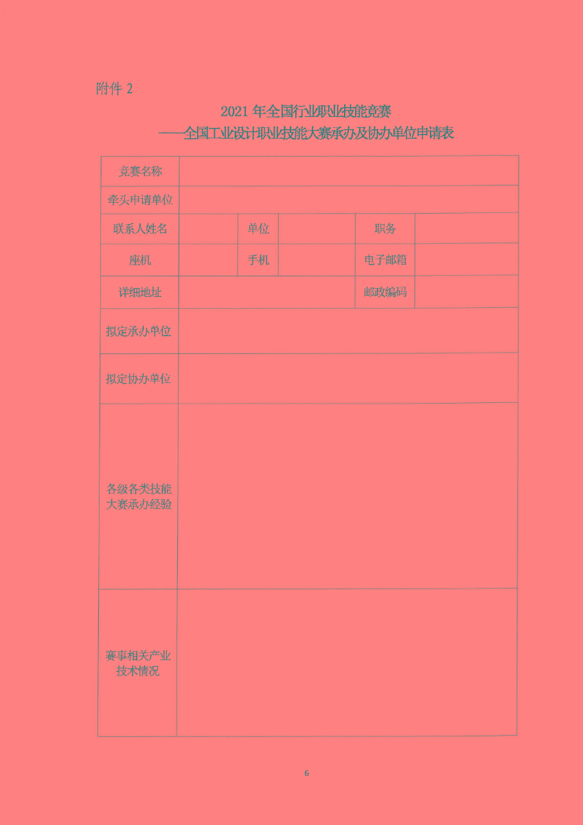 2021年全国行业职业技能竞赛 ——全国工业设计职业技能大赛承办及协办单位申请表