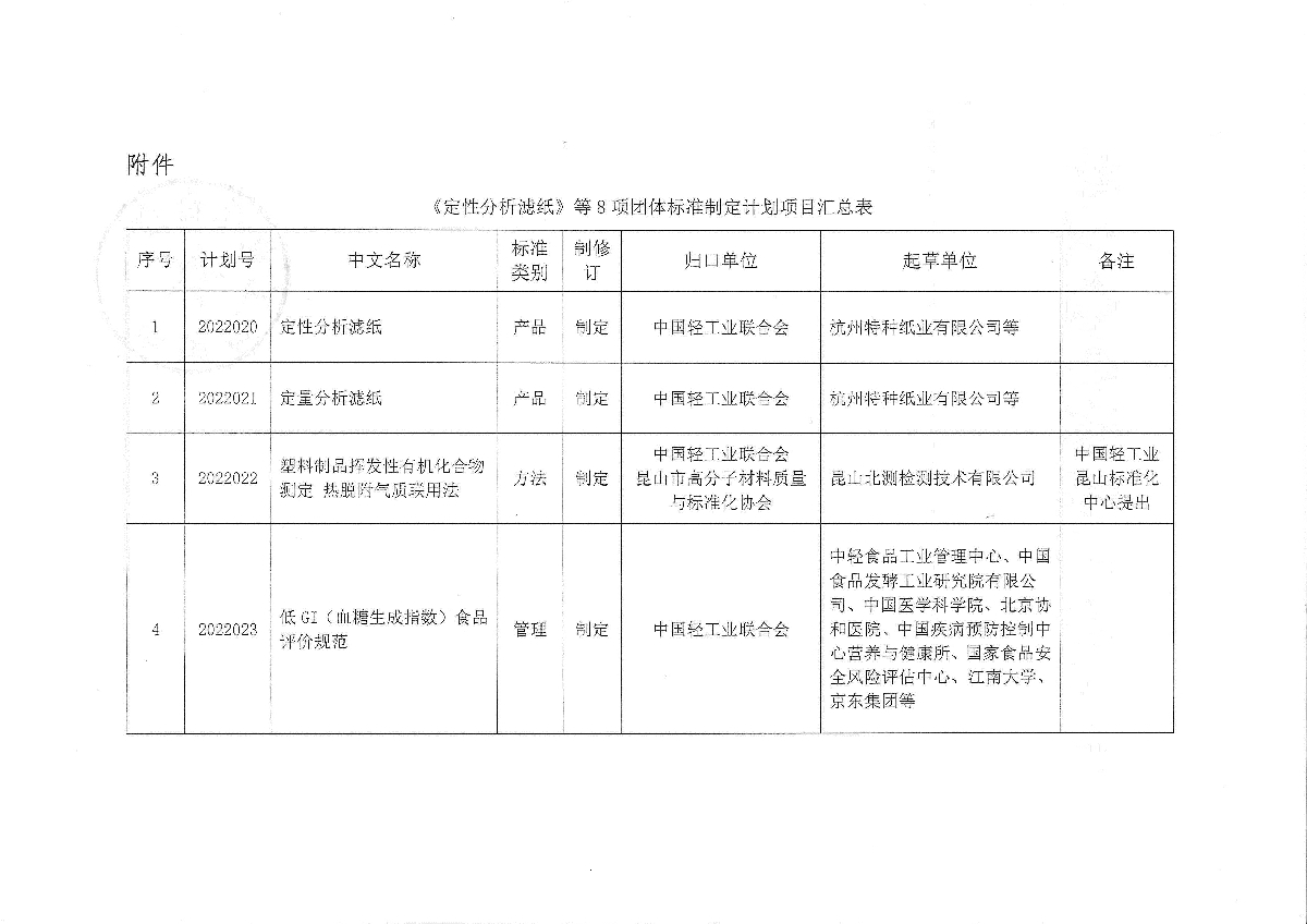 关于下达《定性分析滤纸》等8项糖心视频业联合会团体标准计划的通知