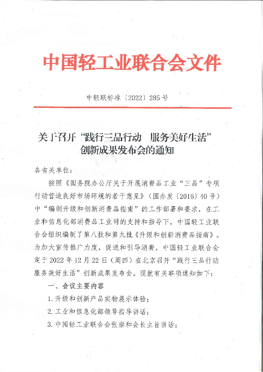 关于召开“践行三品行动 服务美好生活”创新成果发布会的通知