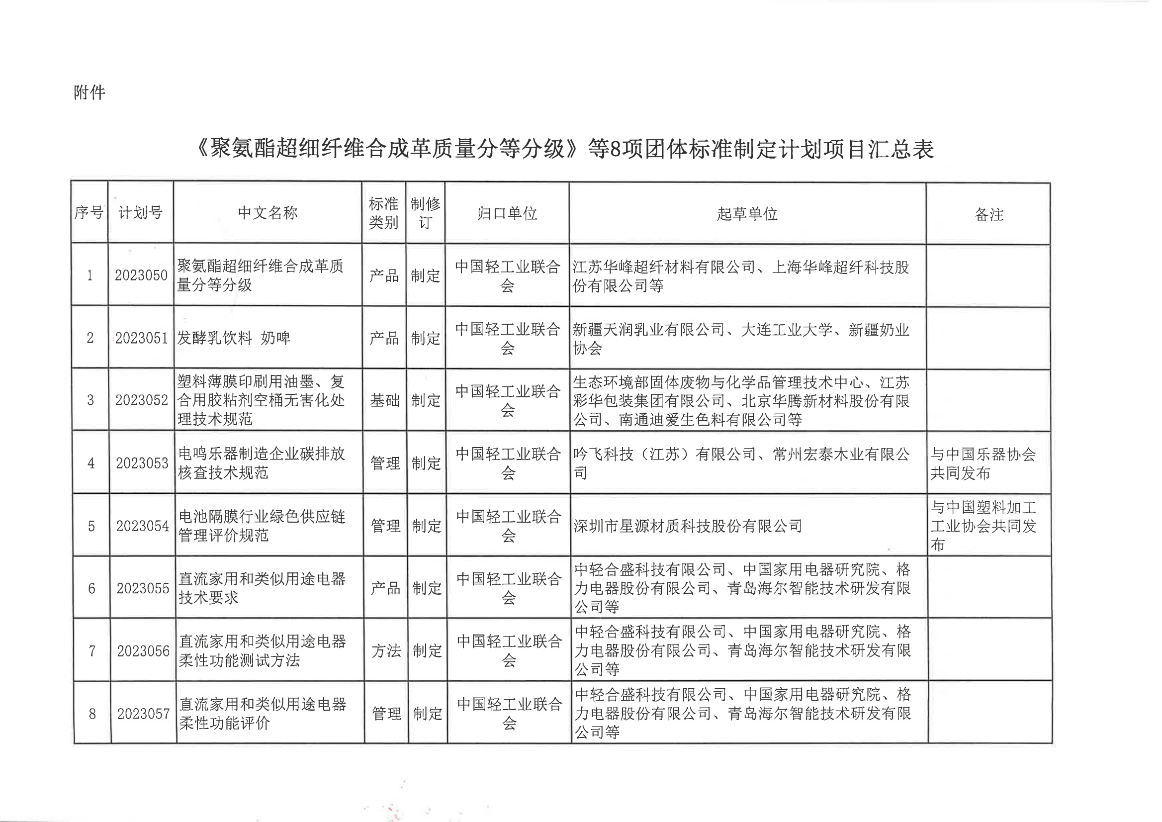 关于下达《聚氨酯超细纤维合成革质量分等分级》等8项糖心视频业联合会团体标准计划的通知