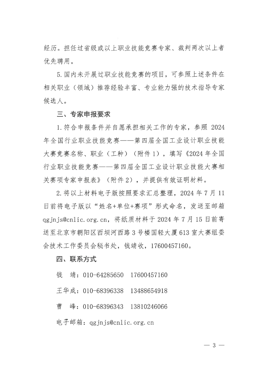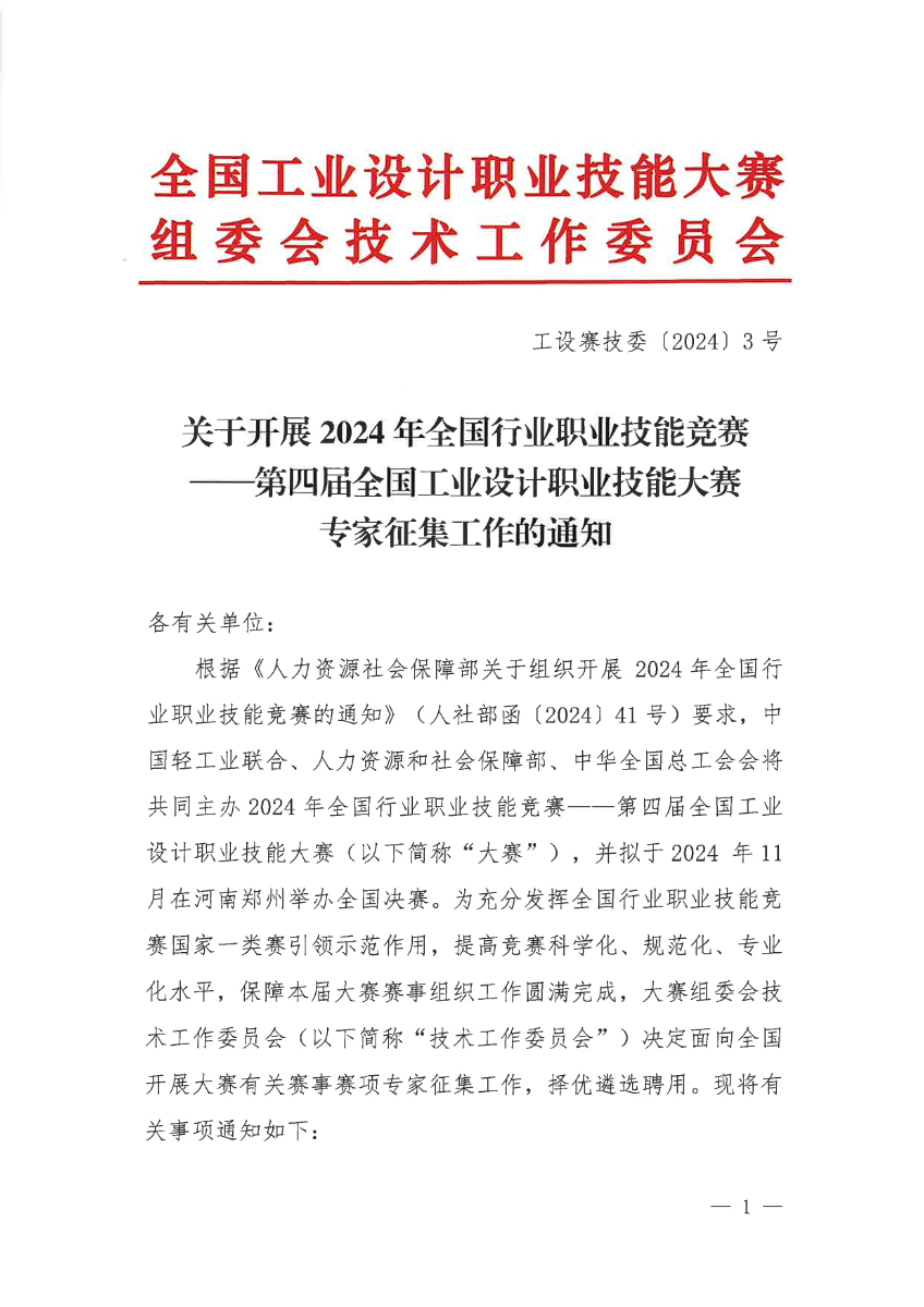 关于开展2024年第四届全国工业设计职业技能大赛专家征集工作的通知