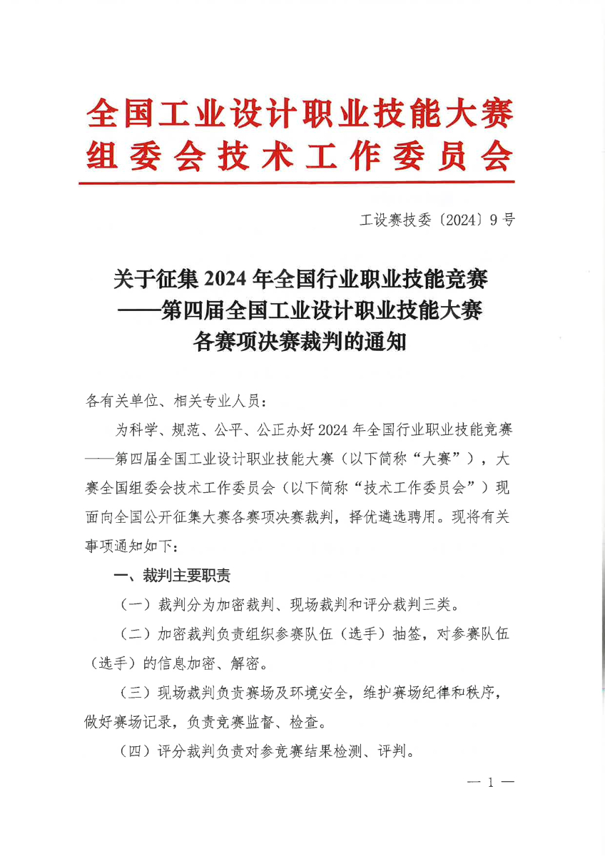 关于征集2024年第四届全国工业设计职业技能大赛决赛裁判的通知