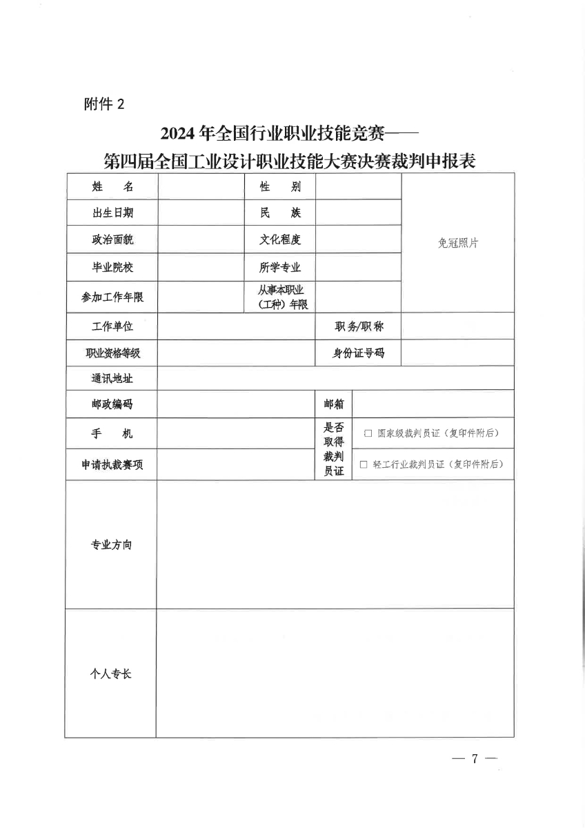 附件2 2024年第四届全国工业设计职业技能大赛决赛裁判申报表. docx 糖心视频高清.